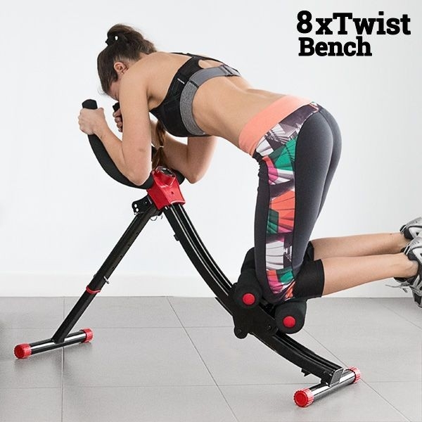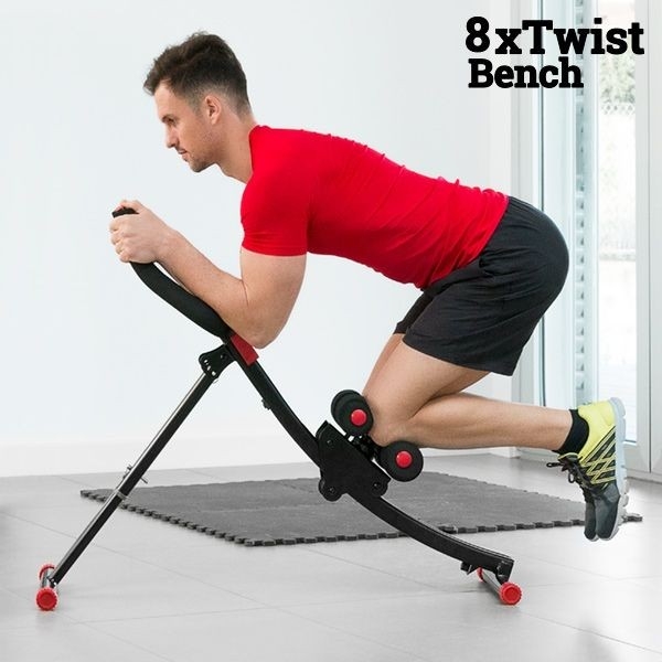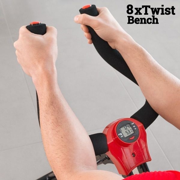 8xTwist Bench ist die einfachste, schnellste und effektivste Methode, in Form zu kommen und einen perfekten Körper zu erhalten! Seine Technologie kombiniert verschiedene Übungen, bei denen der Körper unter Einsatz seines eigenen Gewichts gleitet und sich anspannt, um dank der Kraft der dynamischen Schwerkraft ein optimales Bauchmuskel-Workout zu garantieren. Die Kniestützen können fixiert oder um 45° nach links oder rechts gedreht werden, um seitliche Sit-Ups auszuführen.