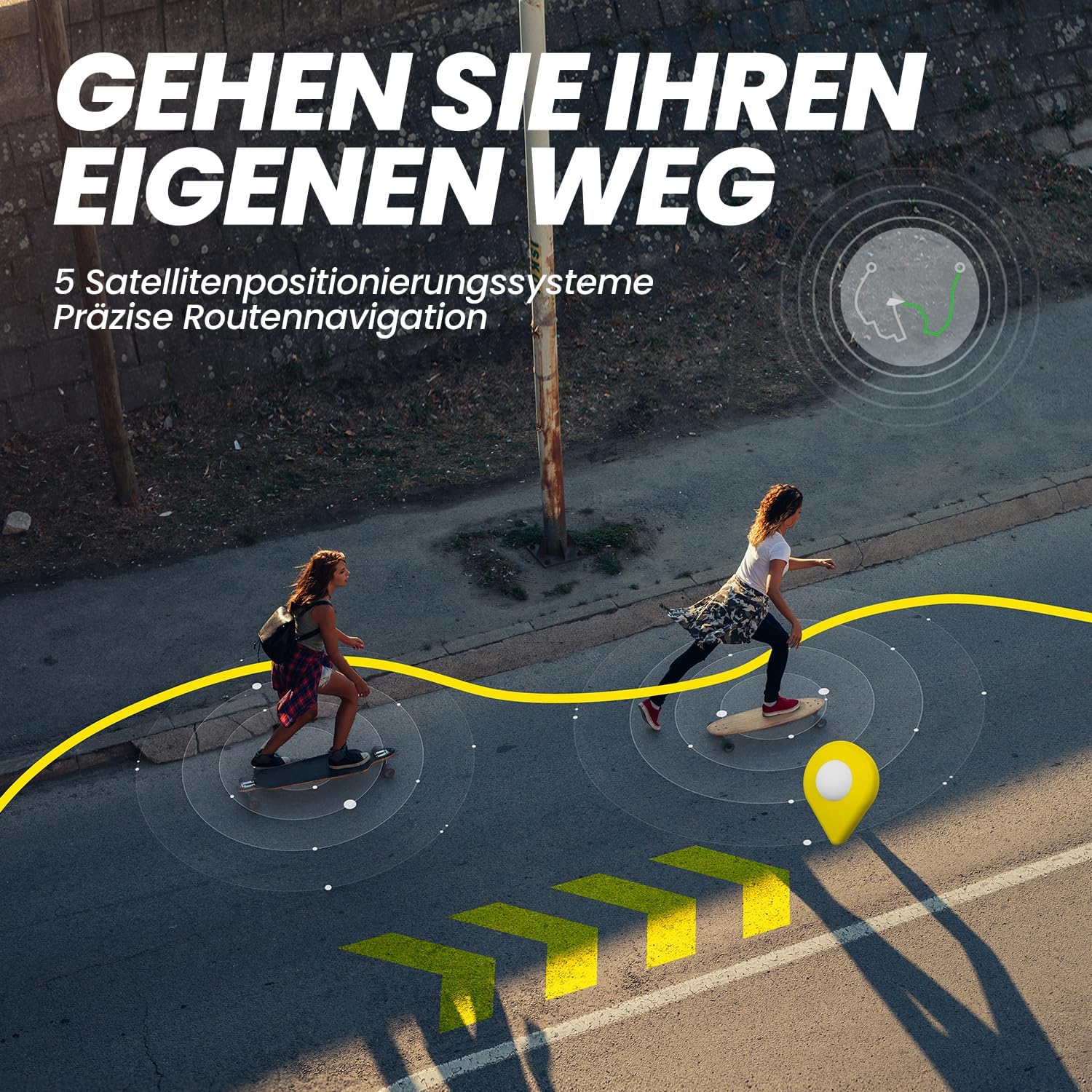 Mit ihrem starken und präzisen gps-tracking und der unterstützung von 5 satellitensystemen wird die stadt zu Ihrem persönlichen spielplatz. Erkunden Sie jeden winkel mit höchster genauigkeit und navigieren Sie mühelos durch den großstadtdschungel.
