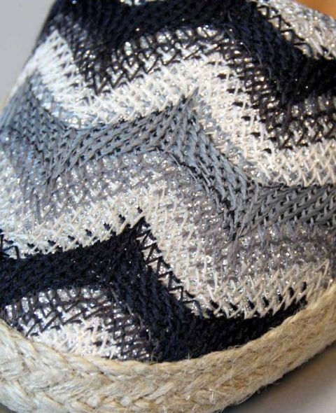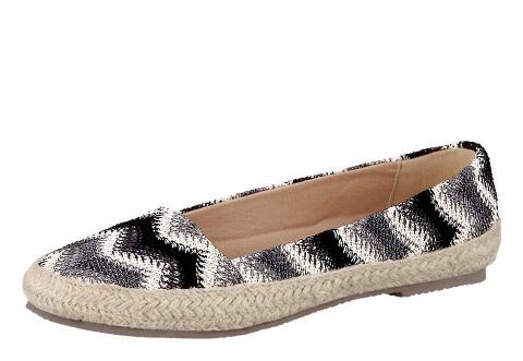 Produktbeschreibung Ballerina aus Textil im angesagten Espandrilles-Style. Originelle Flechtoptik mit tollem Farbverlauf und eingearbeiteten Funkeleffekten. Synthetik-Futter, Decksohle aus Synthetik.Synthetik-Laufsohle. Absatzhöhe ca. 0,5 cm.