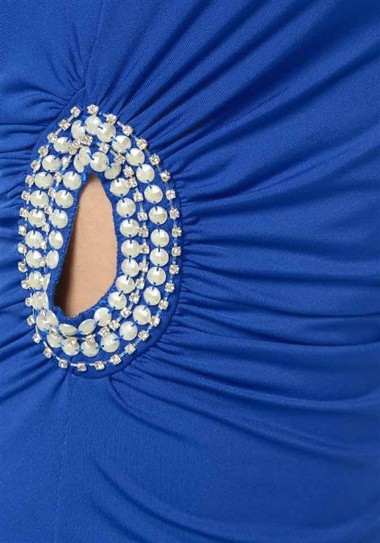 Verführerische Rasse und unübersehbare Klasse. Sexy Bandeau-Kleid mit effektvollen, seitlichen Raffungen. Blickmagnet ist die reizvolle, seitliche Öffnung mit luxuriöser, mehrreihiger Schmuck- und Strass-Stein-Stickerei. Gefütterte Brustpartie. Figurbetonte, schlanke Silhouette. Länge von der Dekolletékante bis zum Saum ca. 72 cm. Leicht glänzende Stretch-Qualität aus 95% Polyester/5% Elasthan.