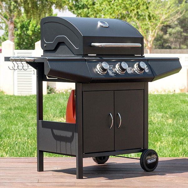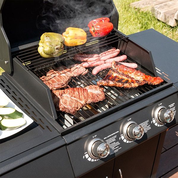 Dieser Außengrill enthält 3 Brenner, 2 breite seitliche Abstellflächen, Haken für das Zubehör, 1 Aufbewahrungsmöglichkeit und Räder, die den Transport erleichtern. Ungefähre Maße: 104 x 115 x 57 cm. Der Brenner ist batteriebetrieben (1 x AA, inklusive). Inklusive der Anleitung und dem Werkzeug für die Montage. Aus Aluminium gefertigt.