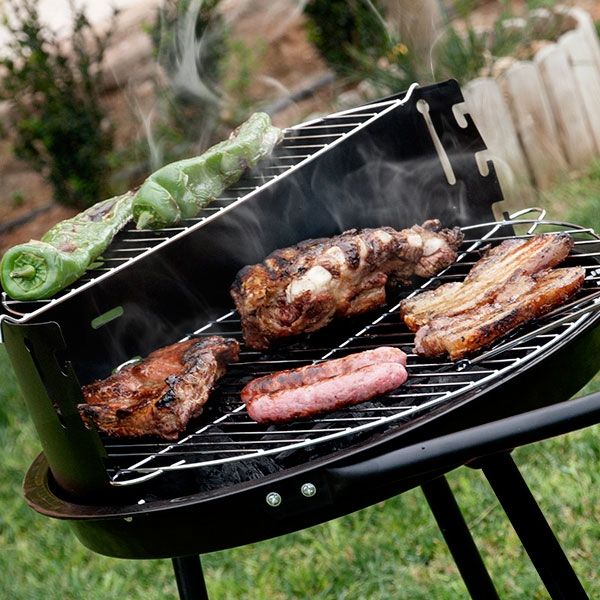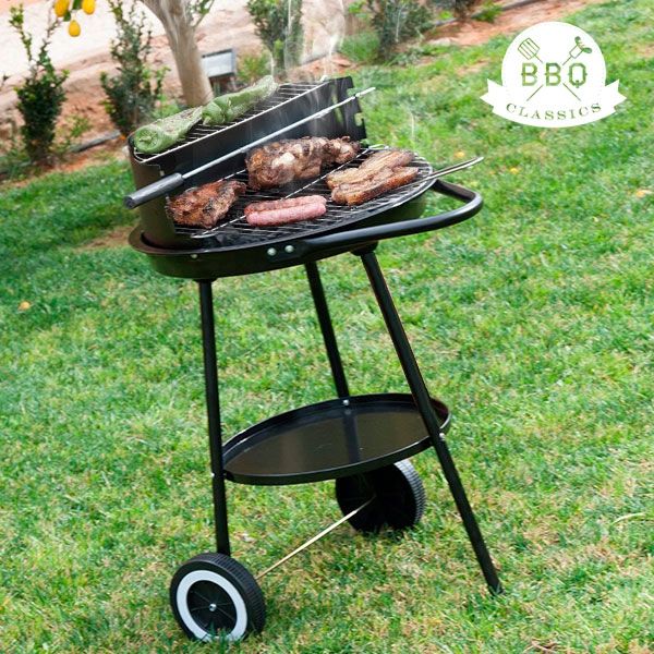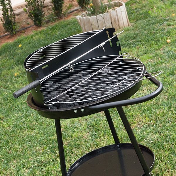 Dieser Außengrill besteht aus Aluminium und bietet eine Abstellfläche für das Grillzubehör und die Gewürze. Der Grill verfügt über eine obere und eine untere Grillfläche, sowie einem mitgelieferten Spieß. Maße (erste Grillfläche - Durchmesser x Höhe) ca.: 43 x 58 cm. Maße (zweite Grillfläche - Durchmesser x Höhe) ca.: 43 x 70 cm. Inklusive Anleitung und Werkzeug für die Montage.