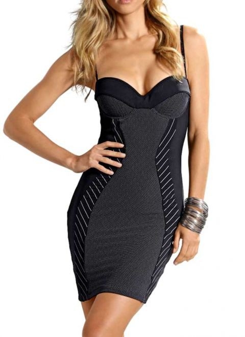 Mit dem Shape-Kleid von JE SUIS machen Sie immer eine gute Figur! Die extrafeste Ware in Kombination mit der raffinierten Schnittführung gibt Ihnen ein sicheres Gefühl und lässt Sie mühelos schlanker aussehen. Dezente Kombination aus Punkt- und Streifendruck. Das Schalenoberteil ist bei dem voll gefütterten und B-Cup geeigneten Shape-Kleid von JE SUIS auf Bügel gearbeitet. Ein hoher, gerader Rückenausschnitt und verstellbare Träger komplettieren den Look. In Größe 38 hat das Shape-Kleid eine Länge von ca. 80 cm. Die hochwertige SENSITIVE-Qualität ist besonders formtreu, bequem, schnell trocknend und luftdurchlässig. Hochwertige Qualität aus 80% Polyamid/20% Elasthan. Shape-Futter aus 72% Polyamid/28% Elasthan.