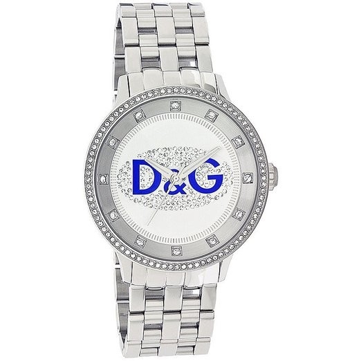 - Ziffernblatt mit Strasssteinen und großem D&G Logo.
