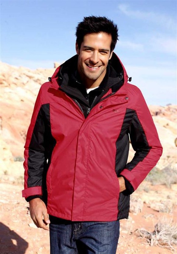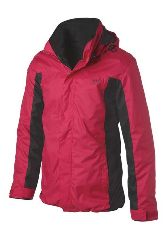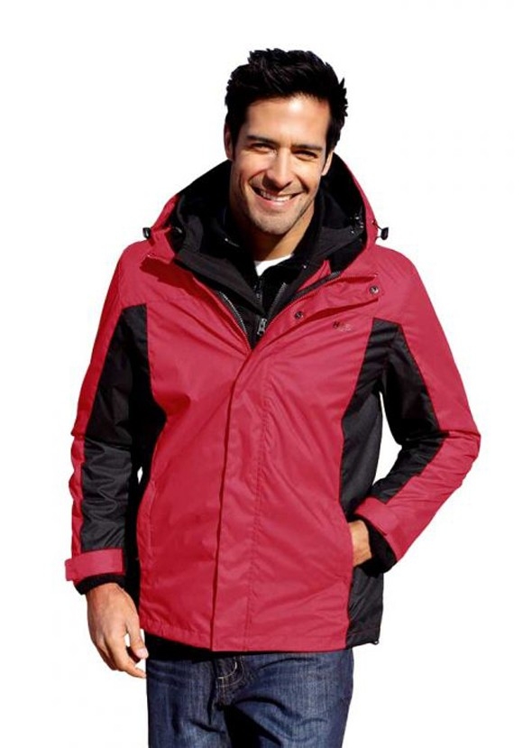 Lässig Markante 3-1-Funktionsjacke. Wasser- und winddicht aber atmungsaktiv. Abnehmbare, verstellbare Kapuze. Modische Kontrasteinsätze sorgen für eine schlanke Silhouette. Kleiner Logodruck auf der Brust. Ärmel durch Klett, Saum durch Tunnelzug in der Weite zu regulieren, so dass Sie immer die gewünschte Passform haben. 2 Reißverschlußtaschen vorn und eine Innentasche. Stehkragen. Verdeckter Frontreißverschluß mit Druckknopfleiste. Tolles Extra die herausnehmbare Fleeceinnenjacke mit Stehkragen und Reißverschluß kann auch separat getragen werden. Länge hinten in Gr. 54 ca. 80 cm. Außenjacke aus 100% Polyester. Fleece-Innenjacke aus 100% Polyester mit kleinem Logodruck auf der linken Brust. Meshfutter aus 100% Polyester.