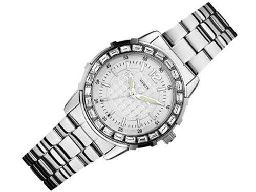 - Edelstahlgehäuse, IP-Silber, poliert, mit Steinen besetzt