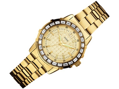 - Edelstahlgehäuse, IP-Gold, poliert, mit Steinen besetzt