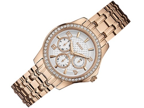 - Edelstahlgehäuse, IP-Rosegold, poliert, mit Steinen besetzt