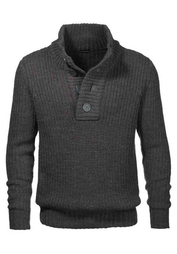 Lässig und markant. Wärmender Pullover von Bruno Banani aus Wollmix für angenehmen Tragekomfort, mit Rippstrickoptik und Stehkragen sowie stylischer Knopfleiste. Schmale Passform. Rückenlänge in Gr. S ca. 66 cm. Weicher Strick aus 85% Polyacryl/15% Wolle.