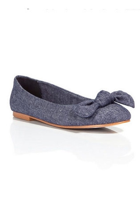 Ein faszinierendes Highlight der Schuhmode. Betont stylish in Szene gesetzte Ballerina aus Textil in Jeansoptik. Dekorative Zierschleife. Textilfutter, gepolsterte Lederdecksohle, Laufsohle aus Synthetik. Ca. 1 cm hoher Absatz. Enthält nichttextile Terile tierischen Ursprungs.