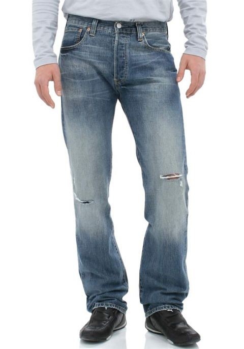 The Original Fit. 501. Die Jeans-Legende im exklusiven Zuschnitt. Mit Knopfleiste. Für die lässige »Anti-Form« cool und locker getragen. Gerade Form: sitzt auf der Hüfte; bequemes Gesäß, schmaler Oberschenkel, gerades Bein, normale Fußweite. Fußweite ca. 47 cm. Angegeben sind die Bundweiten in Inch. Erstklassiger Denim mit Destroyed-Effekten.aus 100% Baumwolle. Der Artikel fällt klein aus, bitte eine Nummer größer bestellen.