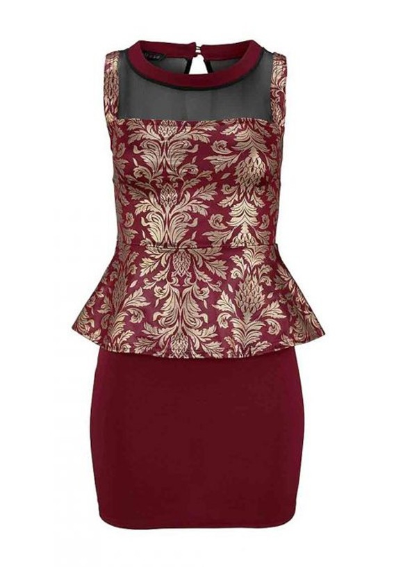 Atemberaubend - das extravagante, goldglänzende Print-Dessin! Die elegant schlichte Form erhält durch die raffinierten Details modischen Drive. Transparenter Mesheinsatz am Dekolleté. Oberteil mit glänzendem Barockprint und angesetztem Schößchen. Rockteil schlank, unifarben und in Minilänge. Figurbetonte Silhouette. Länge ca. 82 cm. Kräftige Stretch-Jersey-Qualität aus 95% Polyester/5% Elasthan. Netzware aus 100% Polyamid.