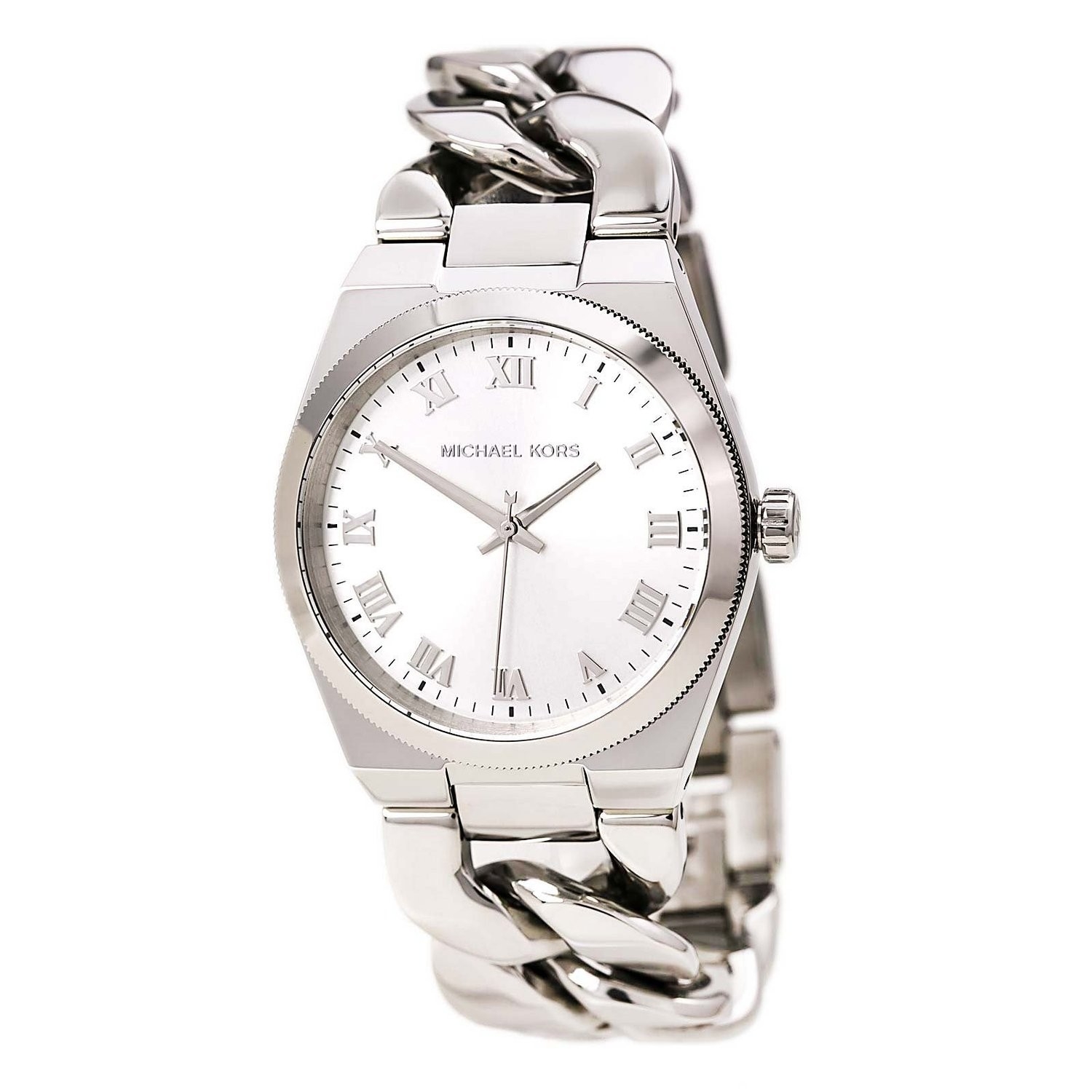 Produktbeschreibung - Uhrwerk: Quarz - kratzfestes Mineralglas- Armband: Edelstahl- Gehäuse: Edelstahl - Zifferblatt: Silbern- Verschluss: Faltschließe- Wasserdicht: 5 ATM- inkl. Michael Kors Box