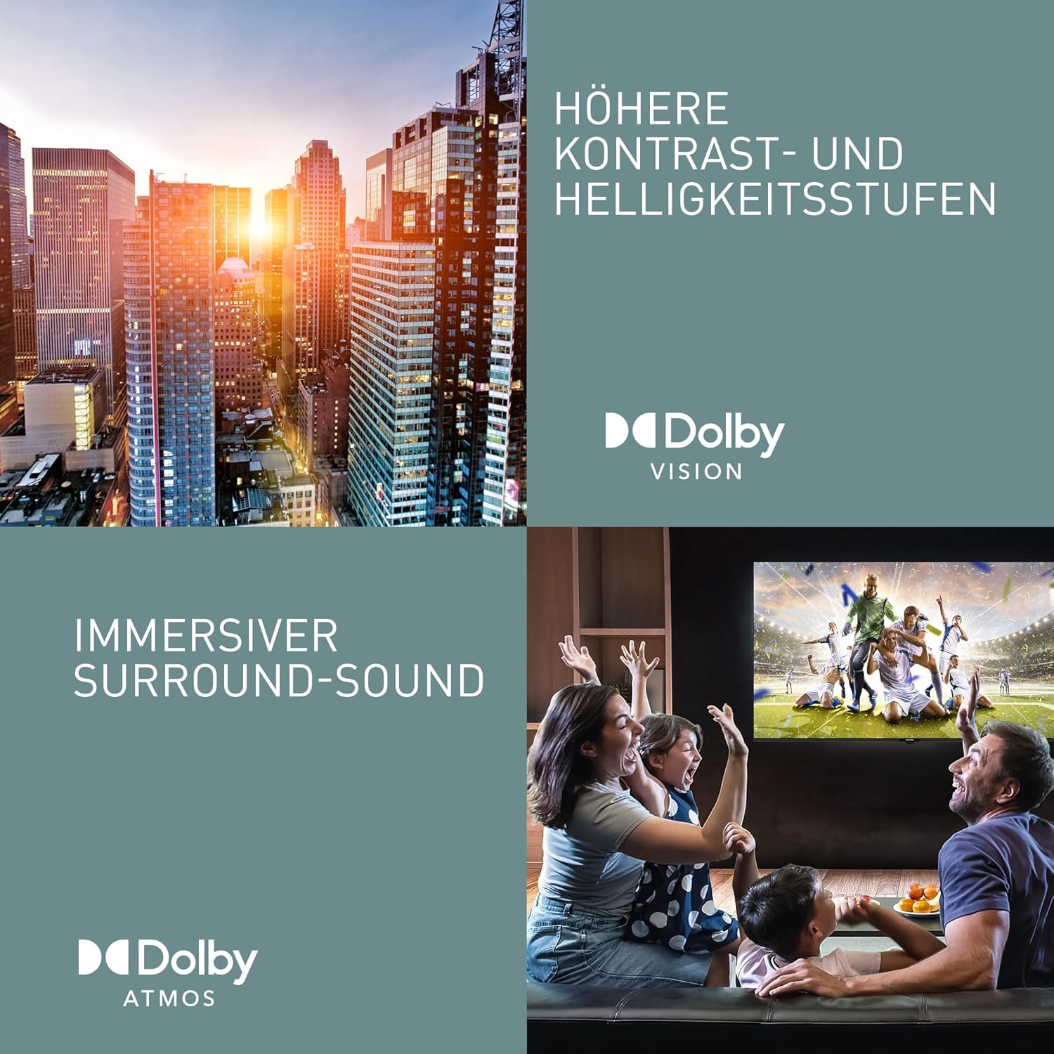 - Multi-HDR: HDR10, HLG & Dolby Vision für starken Kontrast