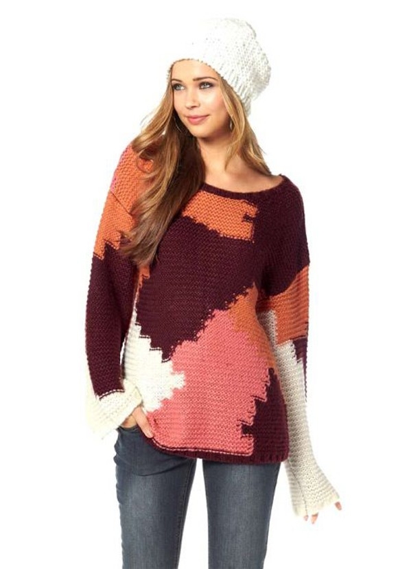 Leidenschaftlich inszeniertes Modell mit Designer-Seele. Der edle Farbmix verzaubert mit perfekter Raffinesse. Trendiger Grobstrickpullover im Oversize-Look und in Patch-Optik. Lässige Form mit überschnittenen Ärmeln. Länge ca. 60 cm. Super weicher Grobstrick aus 100% Polyacryl.