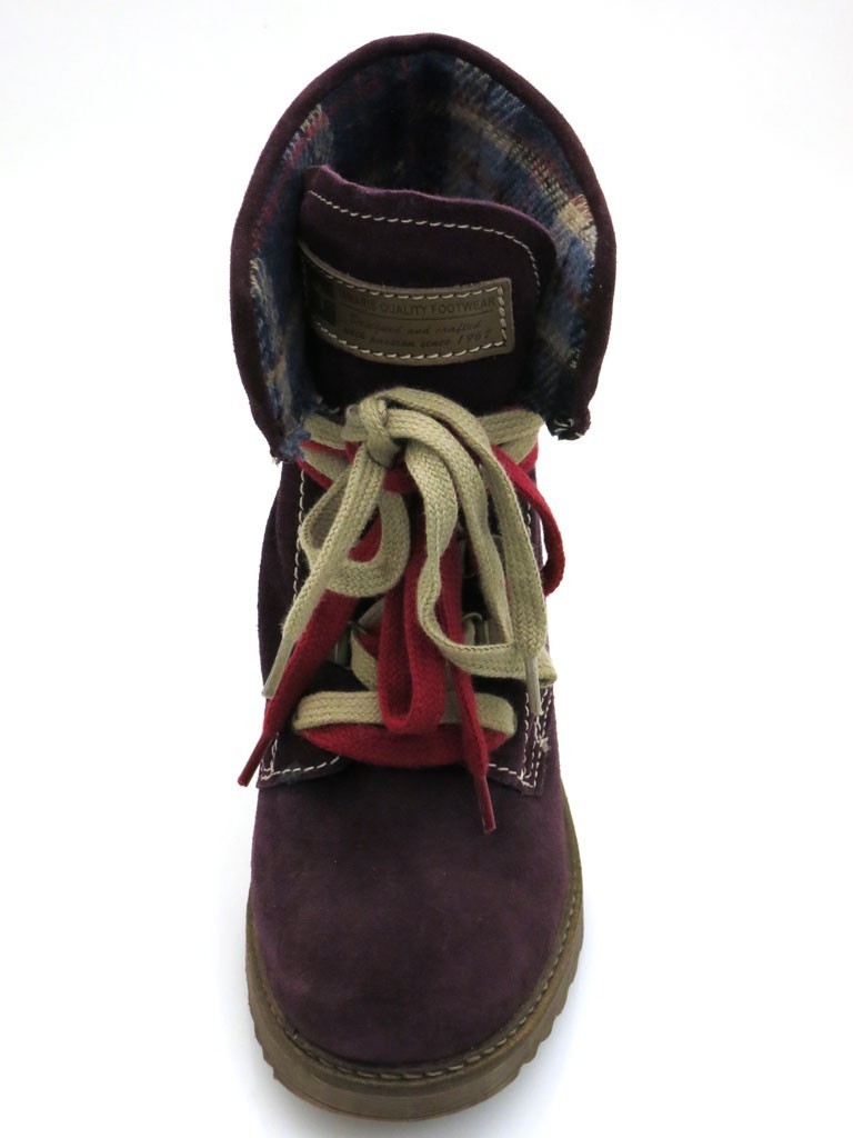 Schöne und weiche Stiefel von Tamaris in einem tiefen, dunklen lila. Außen aus weichem Wildleder, innen mit kariertem wärmendem Textil und wärmender Decksohle. Kontrastnähte, farbige Schnürsenkel und der Look eines Bergsteigerstiefels machen ihn zu einem absolutem Allrounder. Ob zu einer Röhre, zum Trachtenkleid oder zu einer Leggins - der passt immer und sorgt für neidische Blicke...