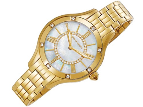 - Edelstahlgehäuse, IP-Gold, poliert, mit Steinen besetzt