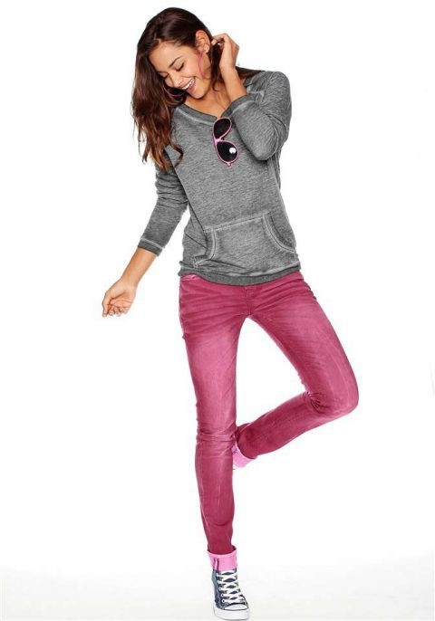 One Green Elephant Röhrenjeans »Kosai«. In zweifarbiger Used-Optik mit Neonfärbung an den Destroyed-Effekten und auf der Innenseite die sichtbar wird, wenn die Jeans gekrempelt wird. Knackige Five-Pocket-Form mit niedriger Leibhöhe. Innenbeinlänge in Gr. L ca. 85 cm. Kerniger und komfortabler Stretch-Denim aus 98% Baumwolle/2% Elasthan. Enthält nichttextile Teile tierischen Ursprungs (Leder-Labelpatch). Ohne abgebildeten Ledergürtel. Diese Jeans kann wegen der natürlichen Färbung im trockenen Zustand abfärben. Bitte Anfangs separat waschen.