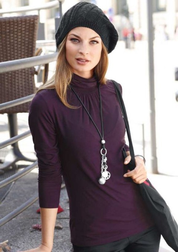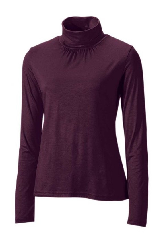 Produktbeschreibung Kombistark und ganz am Puls der Zeit! Feminines Rollkragenshirt in toller Farbe und mit dekorativer Raffung unterhalb des Rollkragens. Figurbetonte Form. Länge ca. 58 cm. Superbequem durch Stretch-Anteil aus 95% Viskose/5% Elasthan.