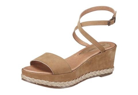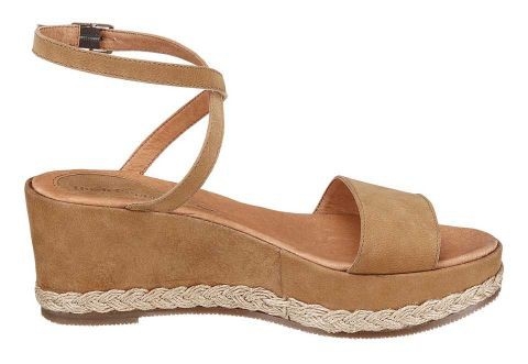Lässig sportive Keilsandalette mit Schnalle. Obermaterial aus softem Veloursleder, Dekorativer Flechtbesatz. Lederinnenausstattung, Synthetiklaufsohle. Bezogener Keilabsatz, Höhe ca. 7 cm, Plateauhöhe ca. 3 cm. Enthält nichttextile Teile tierischen Ursprungs.