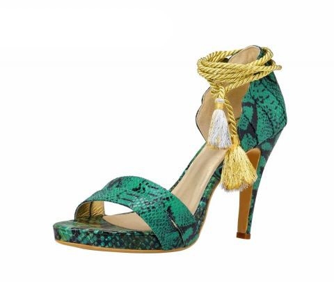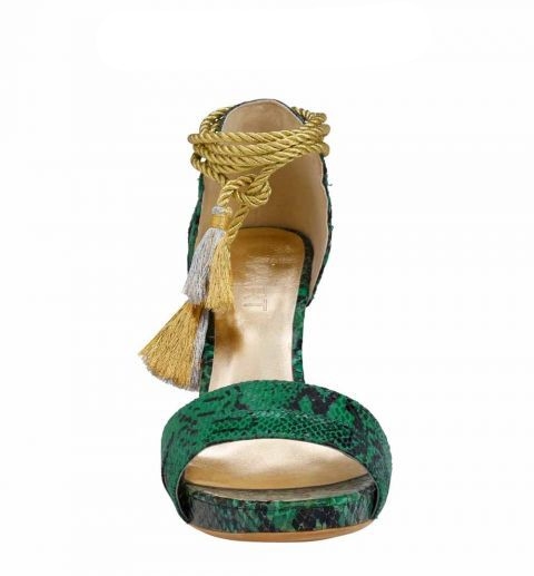 Repräsentativ auf der ganzen Linie. Traumhafte Sandalette aus geprägtem und bedruckten Leder in Schlangenoptik. Fersenkappe mit gold-silberner Kordel zum Binden. So werden die Beine perfekt in Szene gesetzt. Lederfutter. Gepolsterte goldfarbene Lederinnensohle. Laufsohle aus Synthetik. Mit Leder bezogenes Plateau und Absatz. Plateauhöhe ca. 1,5 cm. Absatzhöhe ca. 11 cm inkl. Plateau. Enthält nichttextile Teile tierischen Ursprungs.
