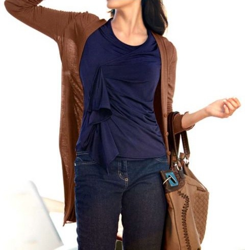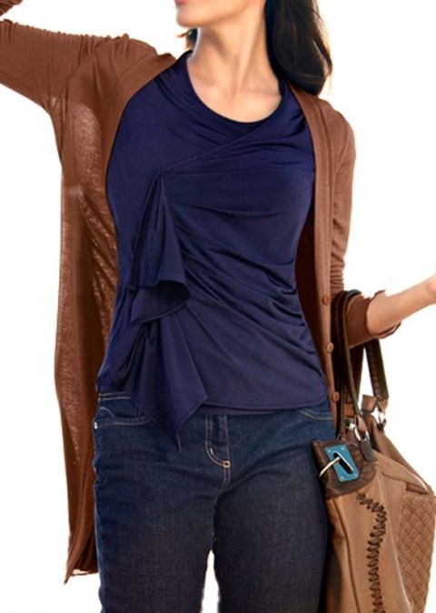 Klares Statement für modisch brisante Detail-Upgrades. Individuell gestyltes Shirt mit schwingendem Volantbesatz. Ein echter Blickfang durch die raffinierte Drapierung im Vorderteil. Kurze, angeschnittene Ärmel. Länge ca. 64 cm. Figurbetonte Form. Pflegeleichte, fliessende Jersey-Qualität aus 100% Viskose. Ohne darüber abgebildete Jacke.