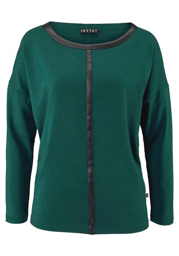 Ein Must-Have für Trendsetterinnen: Cool, stylish und doch elegant.mit reizvollen Detail-Upgrades. Paspelierung am Rundhalsausschnitt und schlanke Applikation vorn und hinten aus Lederimitat. Figurbetonte Silhouette. Länge ca. 64 cm. Hochwertige Jersey-Qualität aus 95% Viskose/5% Elasthan. Besatz aus 100% Polyurethan.