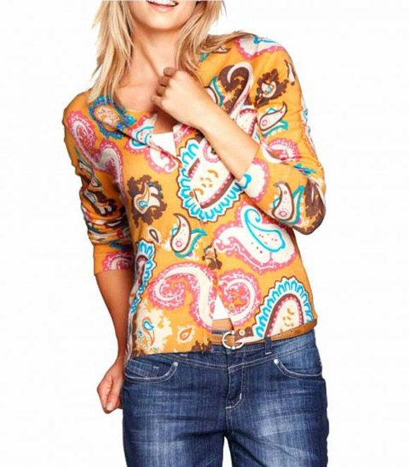 Produktbeschreibung Kapriziös, stilsicher und ganz am Puls der Zeit. Ein edles Mode-Statement mit ornamental verspieltem Paisley-Print! Rundhalsausschnitt. Länge ca. 58 cm. Figurbetonte Form. Trageangenehmer, softer Feinstrick aus 84% Viskose/14% Polyamid/2% Elasthan.