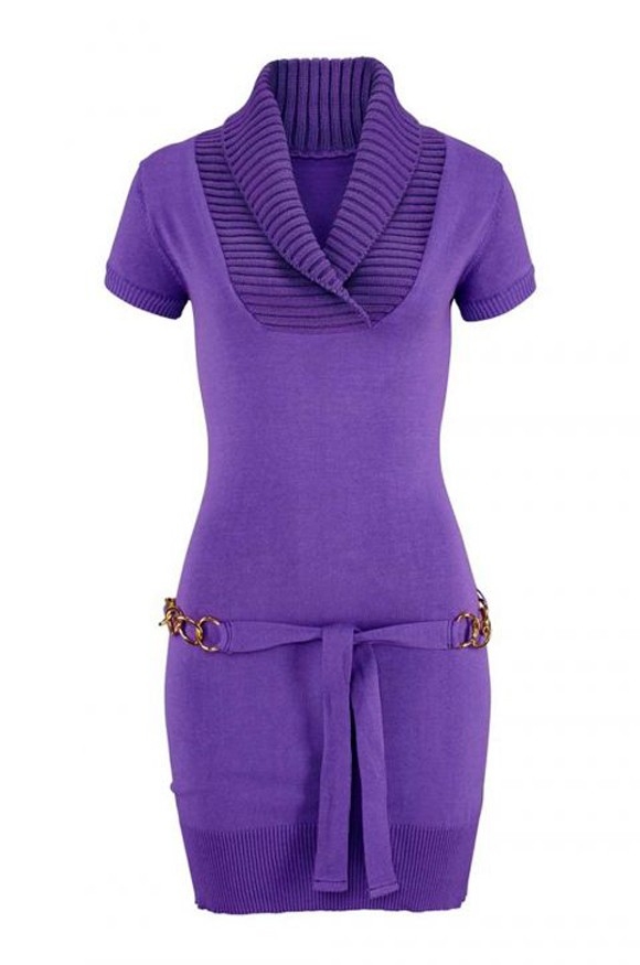 Modisch brisant und gefährlich schön. Sexy Mini-Strickkleid mit großzügigem Schalkragen im modischen Rippenstrick. Kurze Ärmel, extrabreites Rippenbündchen. Raffinierter Eyecatcher der goldfarbene Kettengürtel. Figurnahe Form. Länge ca. 86 cm. Angenehm weiche Qualität aus 100% Baumwolle. Kragen aus 100% Polyacryl.
