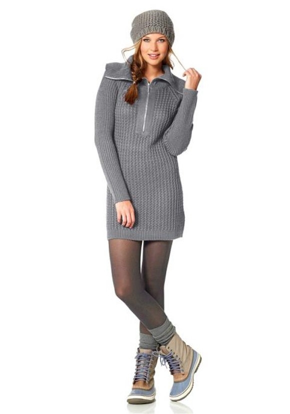 Ein femininer Newcomer in total neuer Optik mit Stil und Klasse. Sportiv inspiriertes Strickkleid aus warmem Grobstrick. Großer Zipper-Rollkragen im Troyer-Style, variabel tragbar. Waffelstrickoptik gepaart mit Rippenstrick. Lange Raglanärmel. Länge ca. 88 cm. Figurbetonte Form. Hochwertiger, tragekomfortabler, schwerer Strick aus 100% Polyacryl.