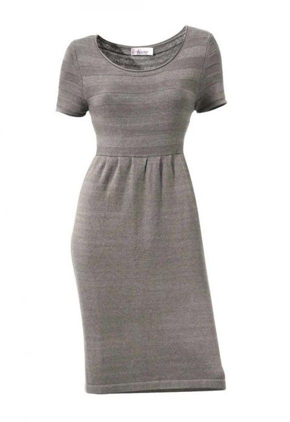 Das Stil-Statement der Saison - puristischer Edel-Chic vereint mit moderner Eleganz. Ganz en vogue in Szene gesetztes Strickkleid im oberen Teil aus Quer-Rippenstrick. Glattstrick-Rockteil in der Taille leicht gerafft. Figurbetonte Silhouette. Länge ca. 90 cm. Wunderbar weicher, warmer Kuschel-Strick aus 50% Viskose/50% Polyamid.