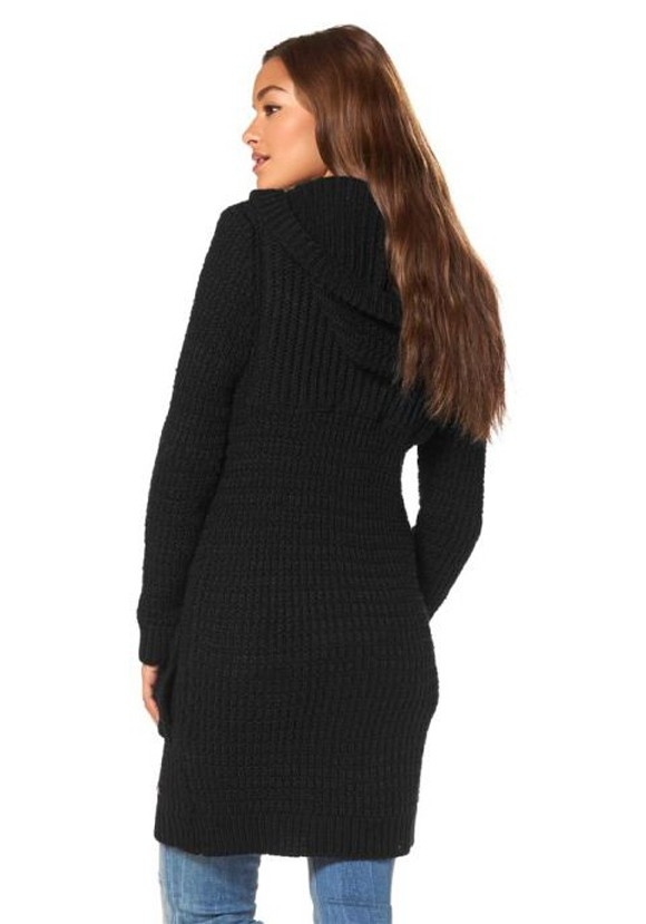 Wenn Sie es gern lässig und dennoch topaktuell mögen, kommen Sie an diesem modischen Strickmantel mit garantiertem Wohlfühl-Faktor nicht vorbei! Mit abnehmbarer Kapuze. Durchgehende, dekorative Druckknöpfe und zusätzliche Knebelknöpfe in Horn- und Lederoptik. Aufgesetzte Taschen. Gesamtlänge in Gr. M ca. 88 cm. Hochwertige, warme Grobstrickqualität aus 100% Polyacryl.