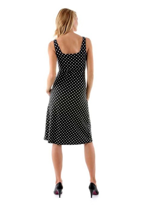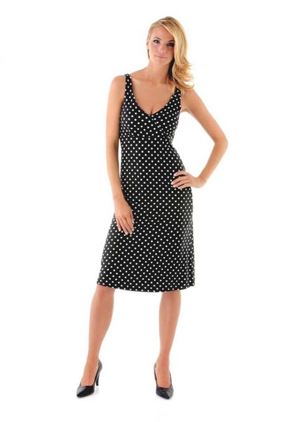 Die Magie des perfekten Looks. Dezent designte Raffinesse mit maximaler Wirkung. Feminines Jerseykleid mit weißem Tupfenmuster. Attraktives Trendmodell mit ausgearbeiteter, gefütterter Brustpartie in Wickeloptik. Unterbrustnaht. Figurbetonte Silhouette mit ausschwingender Saumweite. Länge ca. 104 cm. Weiche, fließende Jersey-Qualität aus 95% Viskose/5% Elasthan.