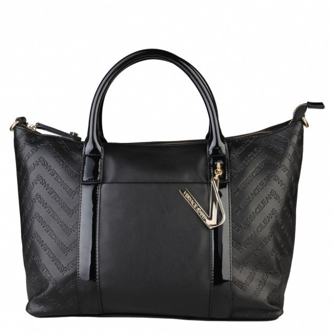 Sale mit bekannten Marken Versace Jeans Handtasche Damen-Tasche Damenhandtasche 193,69€ - Versace Jeans Damen Handtasche - Material: Lack - Farbe: Schwarz - zwei Henkel, Reißv…