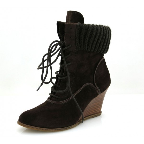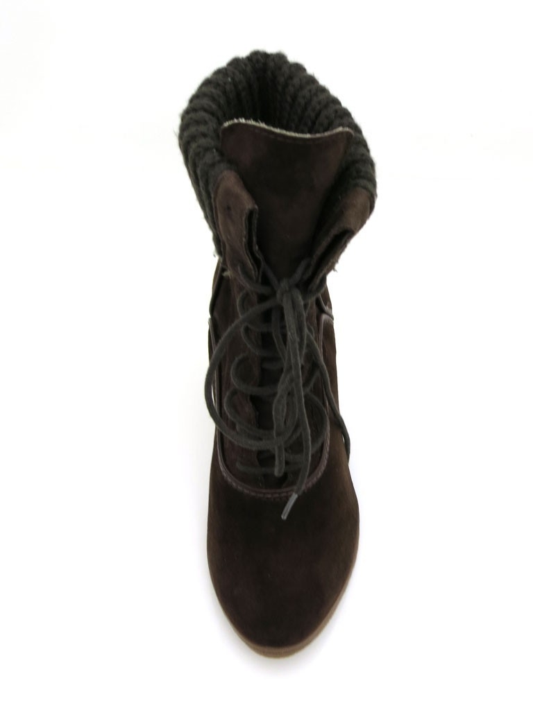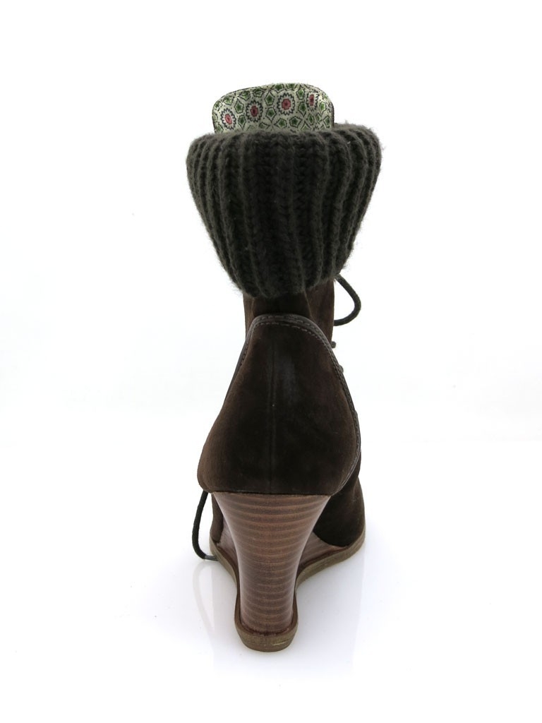Gerade und schlichte Linien? Diese Stiefelette ist schlicht und elegant zugleich. In einem dunklen, warmen Braun gehalten, komplett zum Schnüren - und natürlich kann diese auch hochgekrempelt werden, so daß der Strickschaft doppelt so lang sein wird, wie auf den Bildern. Schlanke Form, die einen schlanken Fuß macht. Zu einer Röhre einfach ein Muss. Der Absatz in ausgeprägter Holzschicht-Optik unterstreicht die klassische Linien.