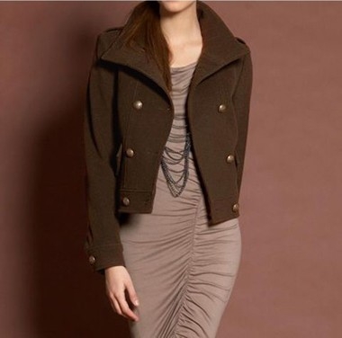 Produktbeschreibung Rücksichtslos extravagant - kompromißlos raffiniert. Edle Wolljacke doppelreihig geknöpft mit effektvoll geprägten Kugelknöpfen. Cooler Stehkragen - hoch schließbar. Geknöpfte Schulterriegel. Geknöpfte Patten-Taschen. Geschlitzte Ärmelabschlüsse mit geknöpftem Abschluß. Aufwendig gesteppte Teilungsnähte. Länge ca. 50 cm. Angesetzter Saumbund. Erstklassiger, warmer Materialmix aus 70% Wolle/20% Polyamid/10% Kaschmir. Futter aus 100% Acetat.