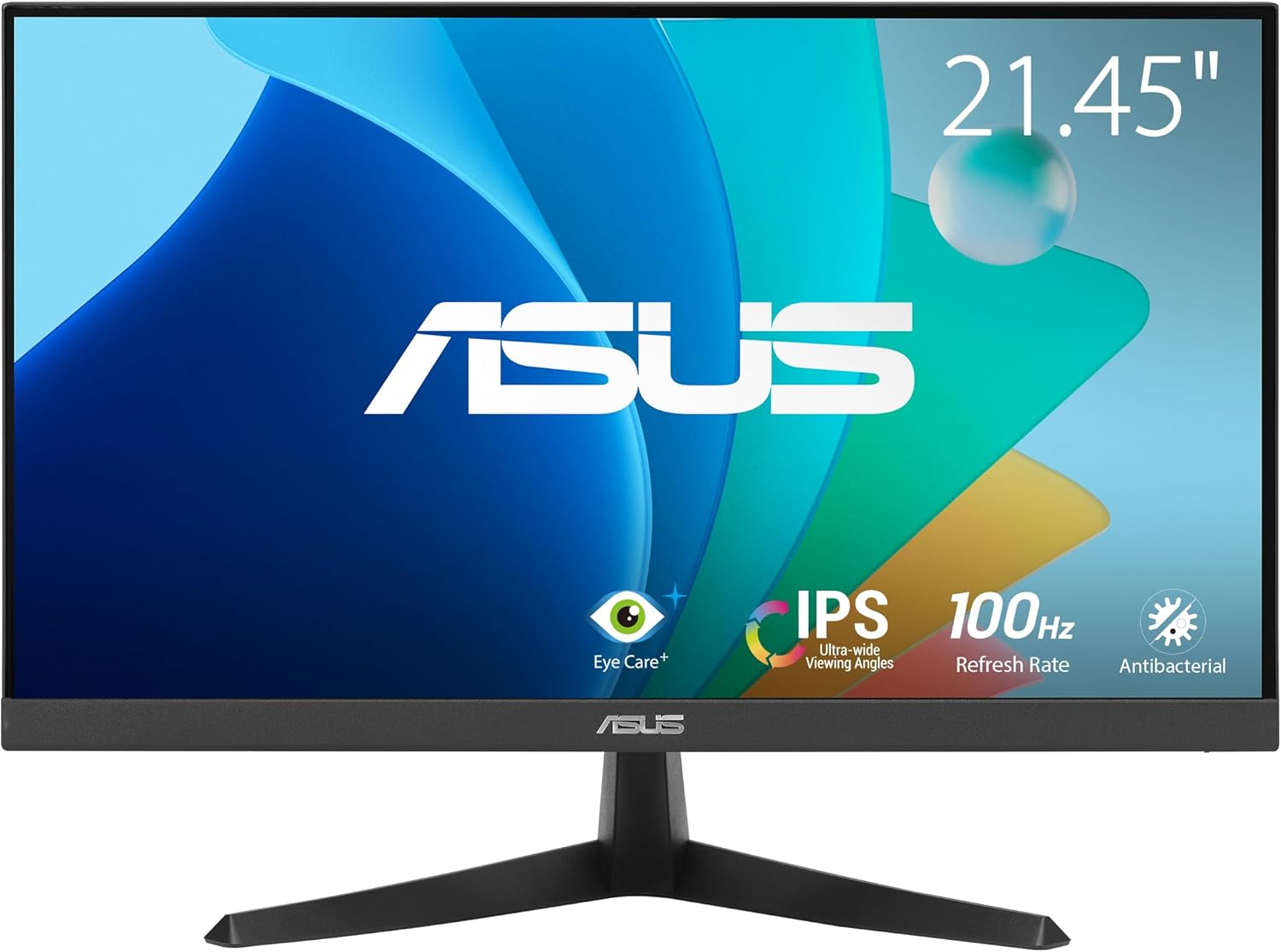ASUS VY229HF, ASUS VY229HF Monitor, 22 Zoll Monitor, 21,45 Zoll Monitor, Full HD Monitor 100 Hz, IPS Monitor 1 ms, Adaptive Sync Monitor, Eye Care Monitor ASUS, günstiger Gaming Monitor 22 Zoll, Office Monitor augenfreundlich, Monitor VESA 100×100 schwarz.