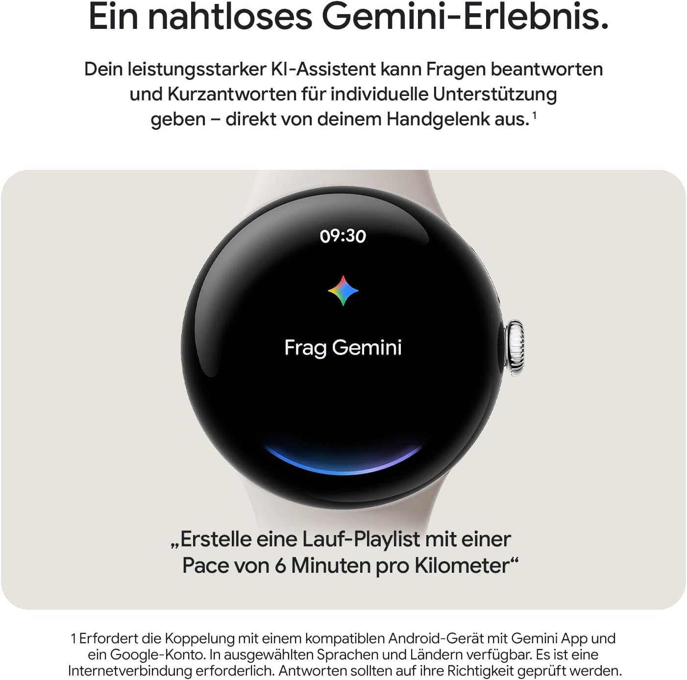 Mit der Google Pixel Watch trägst du smarte Funktionen direkt am Handgelenk. Das kompakte, angenehm leichte Aluminium-Gehäuse sitzt komfortabel – im Büro, beim Workout oder auf Reisen. Dank Wear OS steuerst du Musik, Navigation, Smart-Home und Benachrichtigungen intuitiv. Die Fitness-Features liefern aussagekräftige Werte zu Herzfrequenz, Schlaf und Aktivität. GPS protokolliert deine Outdoor-Strecken, während NFC kontaktloses Bezahlen ermöglicht – praktisch, sicher, schnell.
