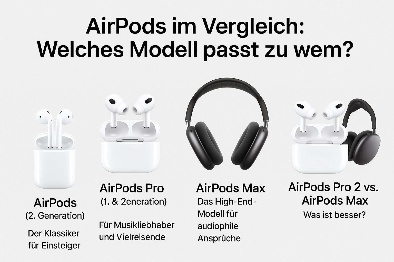 Die Apple AirPods sind inzwischen zu einem unverzichtbaren Bestandteil des Audio-Marktes geworden. Mit verschiedenen Modellen, die kontinuierlich verbessert werden, stehen Nutzer heute vor der Frage: „Welche AirPods kaufen?“ In diesem AirPods Vergleich 2025 zeigen wir dir die Unterschiede zwischen den neuesten AirPods-Modellen, damit du die perfekte Wahl treffen kannst. Vom Einsteigermodell bis hin zu den High-End AirPods Max – wir helfen dir, die passende Variante zu finden, die deinen Bedürfnissen entspricht.